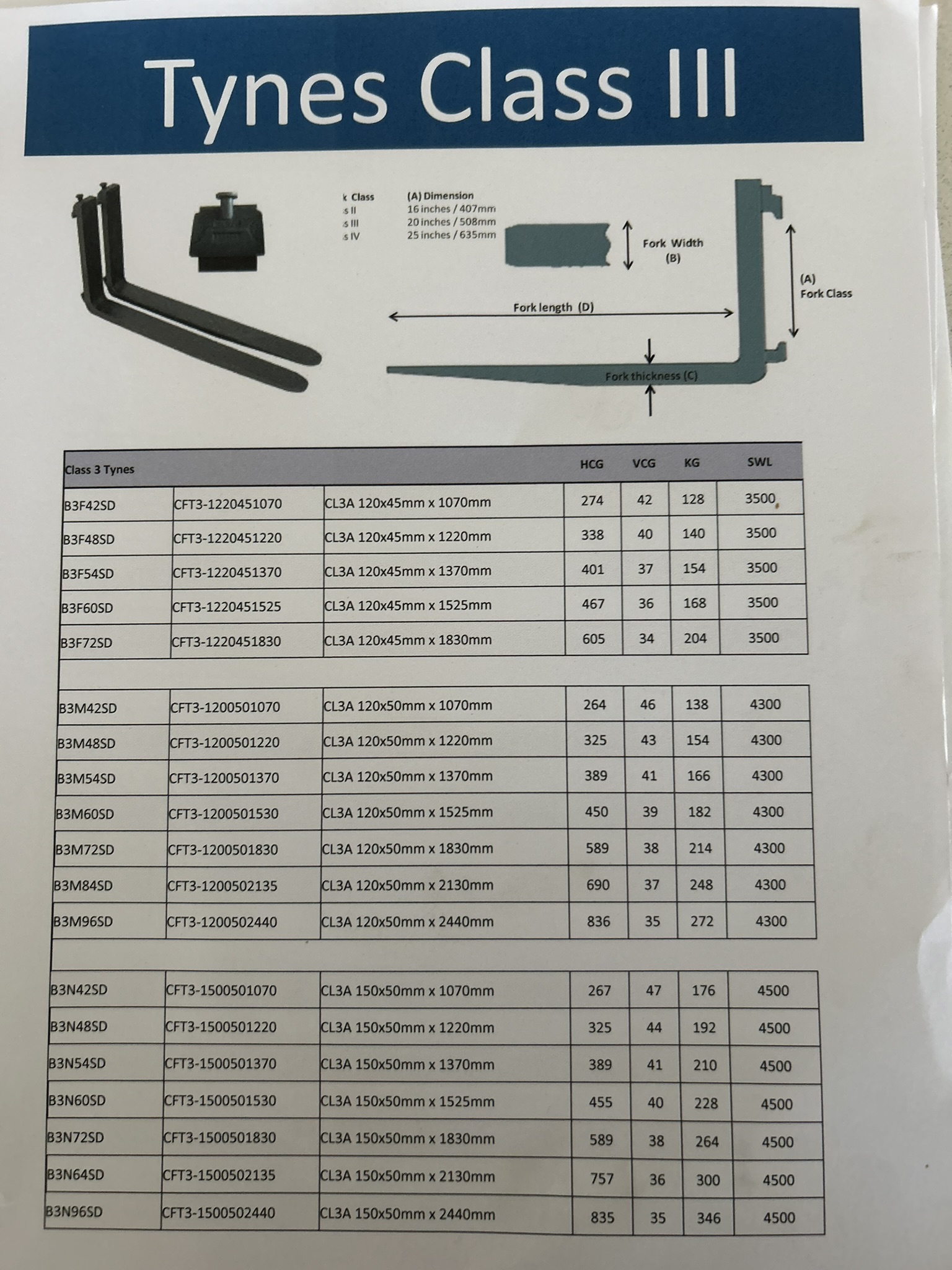 - Main carriage way sizes as below this is what the fork tynes slide along